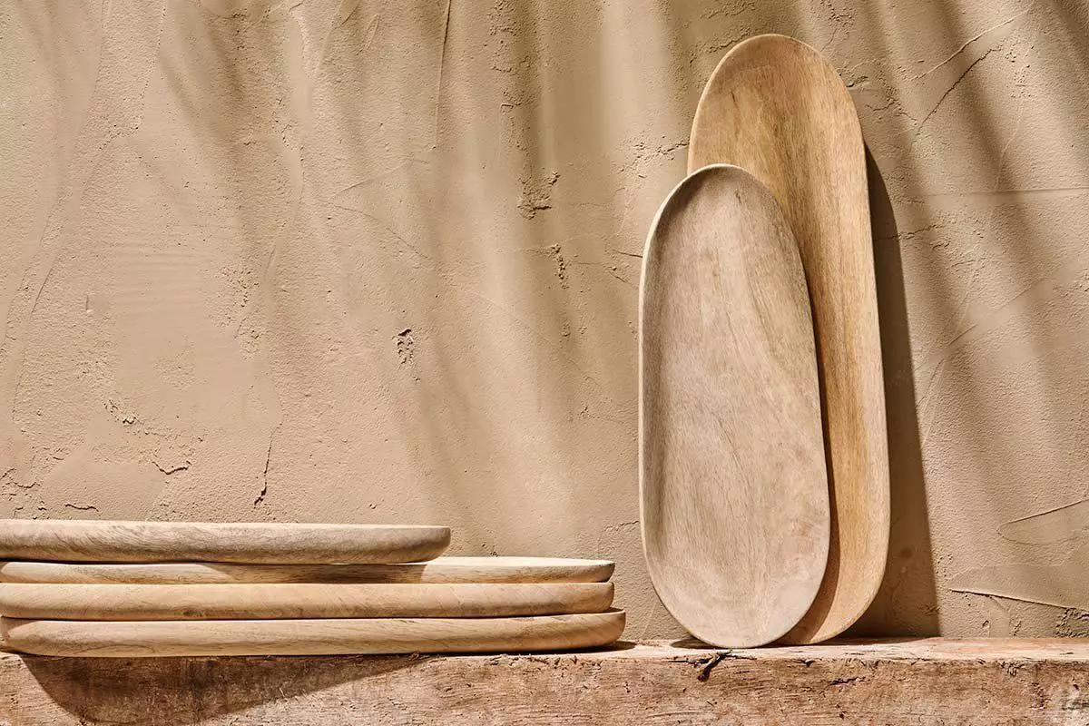 These pieces are created from sustainable mango wood. The mango trees are initially grown for their fruit, but once they have stopped producing they can be cut down and used to create wood products. This allows farmers to plant more trees and provides them with a supplementary income.