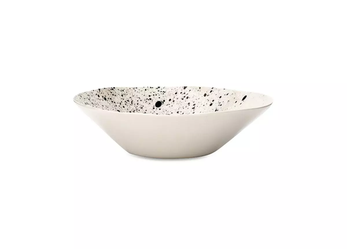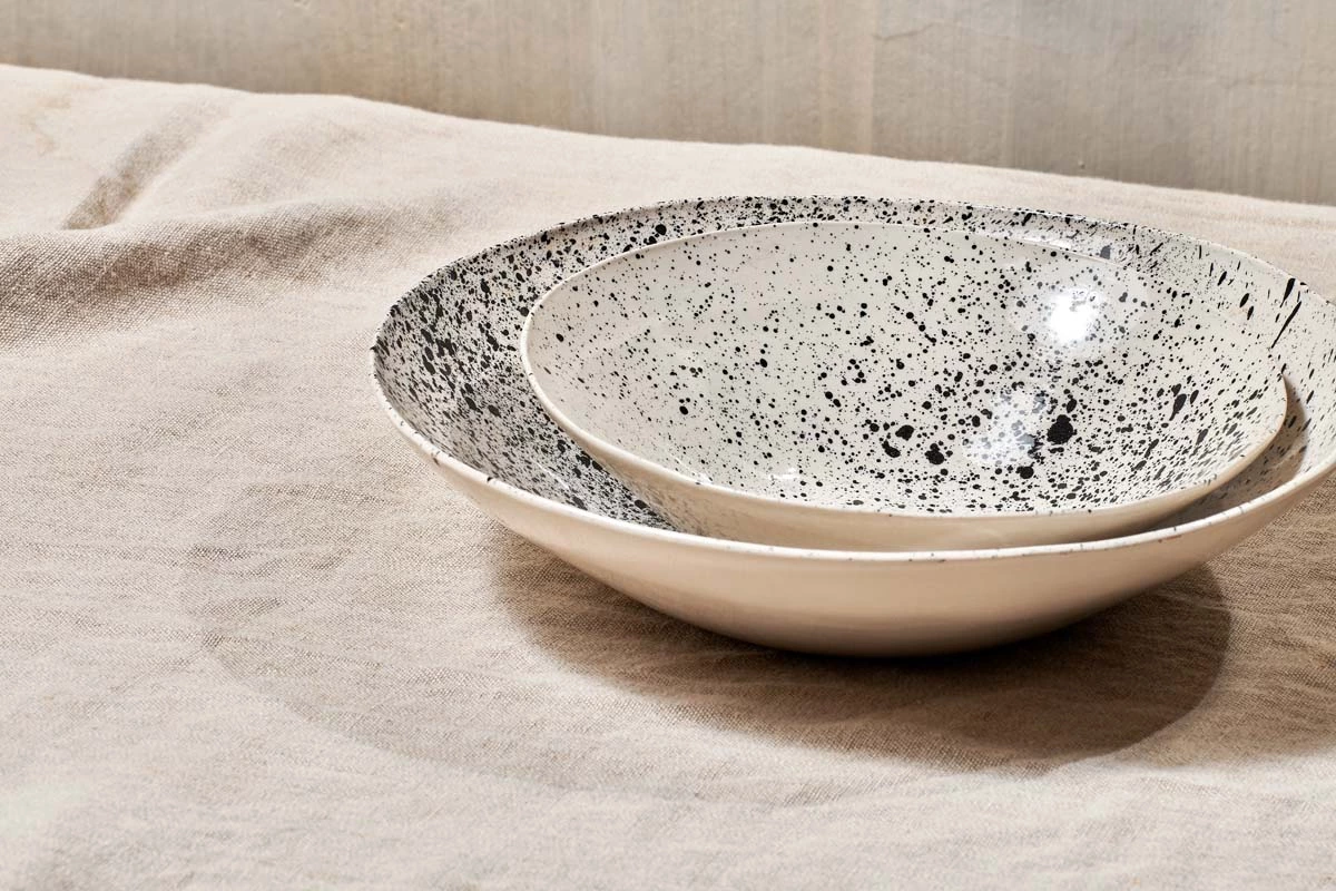 These large serving bowls are perfect as salad bowls and puddings. The natural shape of the bowls is enhanced with a striking hand decorated splatter design.
