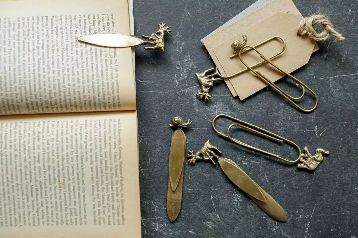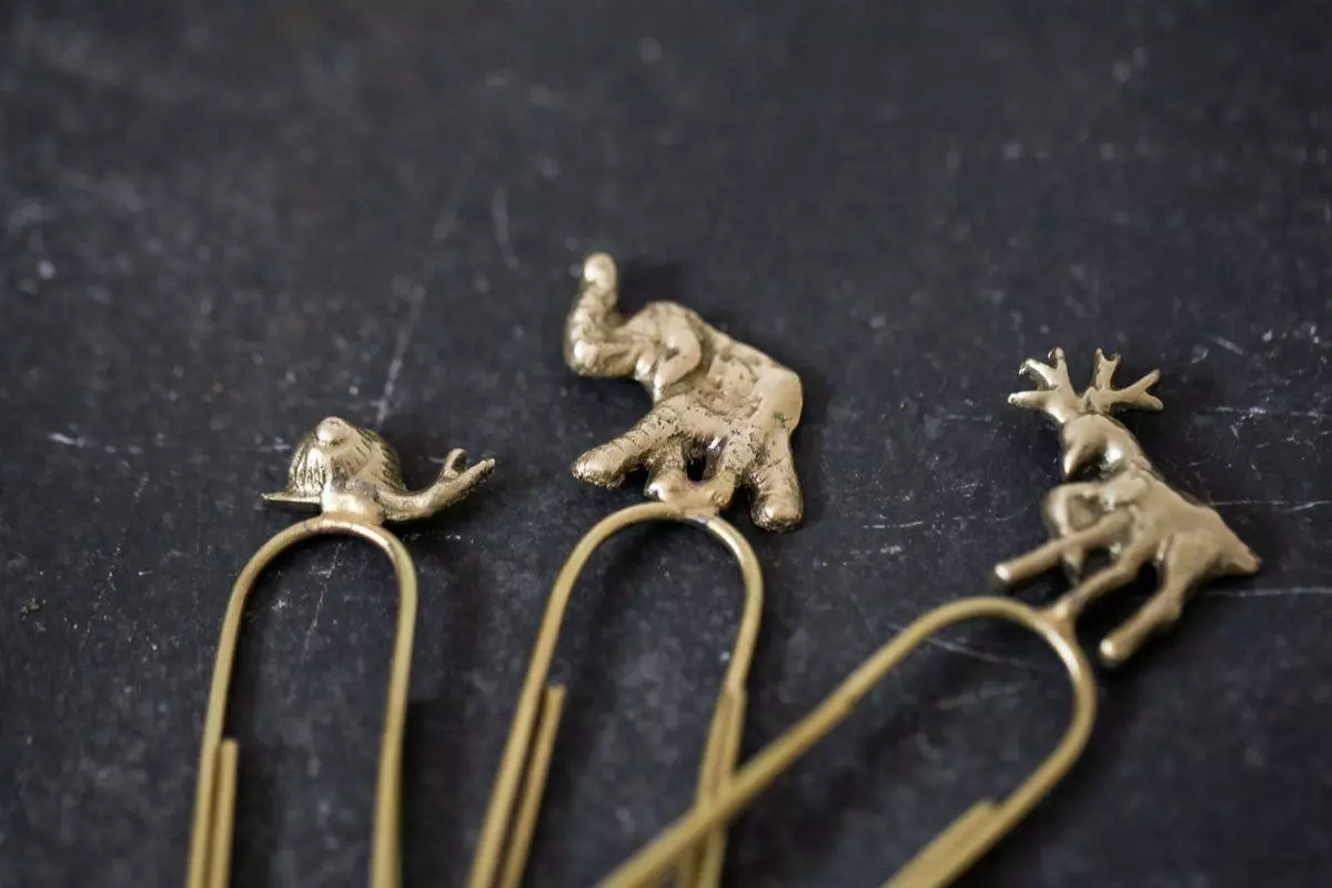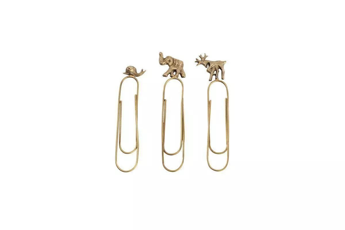 This set of three over-sized brass paperclips are decorated with an elephant, stag and snail. Ideal for adding a little charm to paperwork.