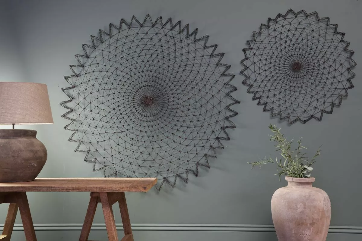 Striking wire wall art with a rust finish, for the home and garden. The intricate circular pattern fans out in this eye catching kaleidoscope design.
