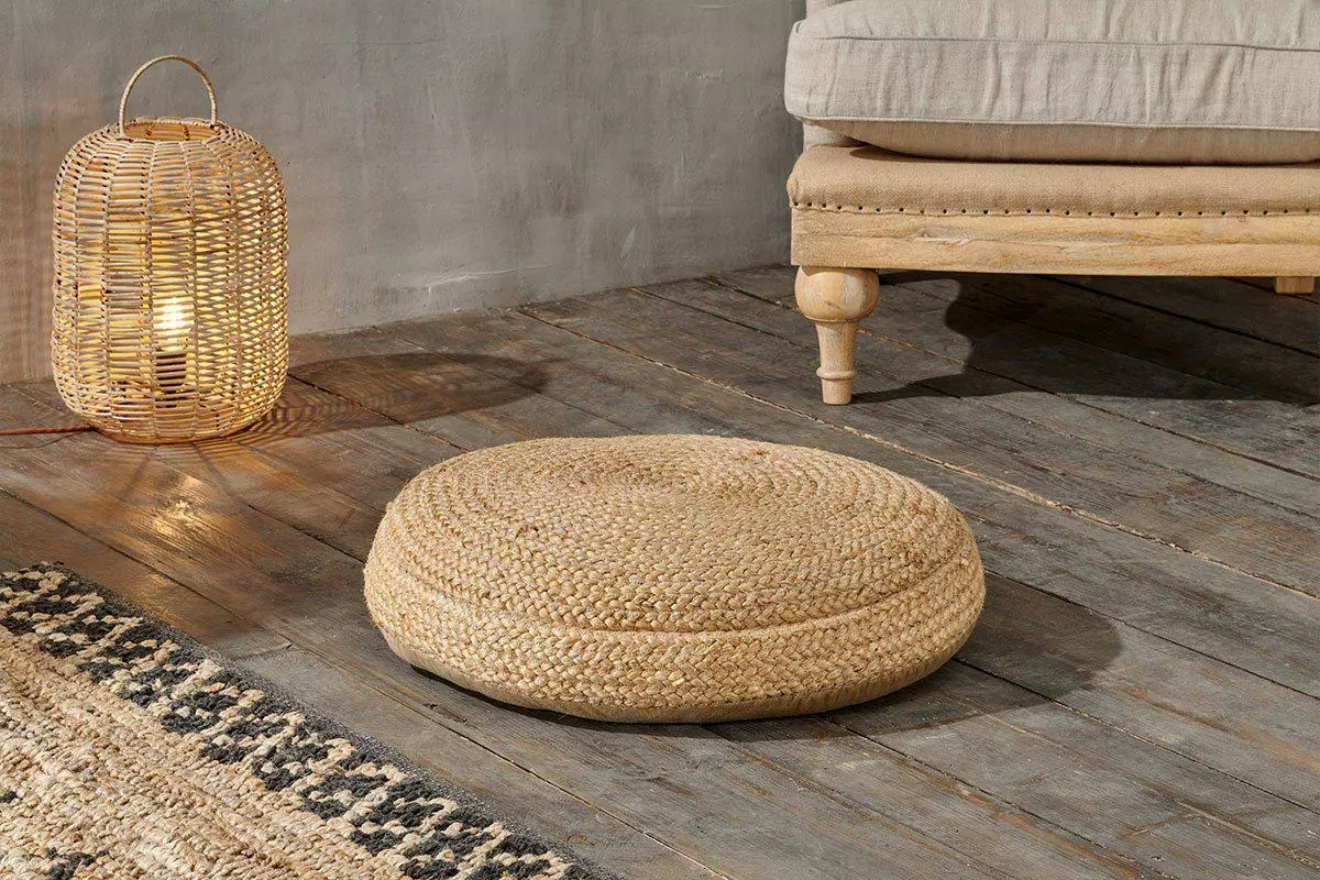 Complete the look with this lovely braided hemp pouf. This large floor pouf is both stylish and practical. Have it out on display or store it away to use as extra seating when guests arrive.