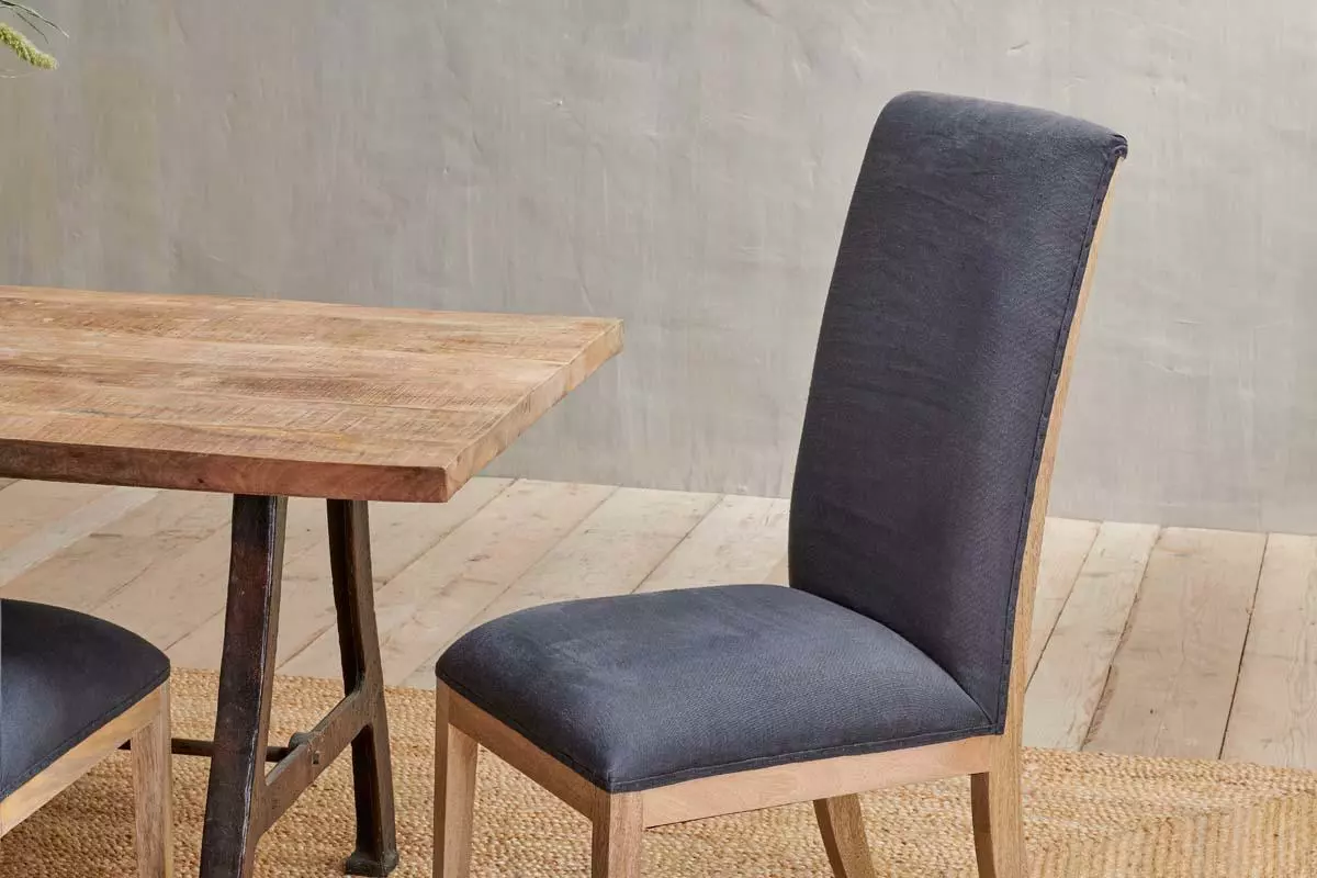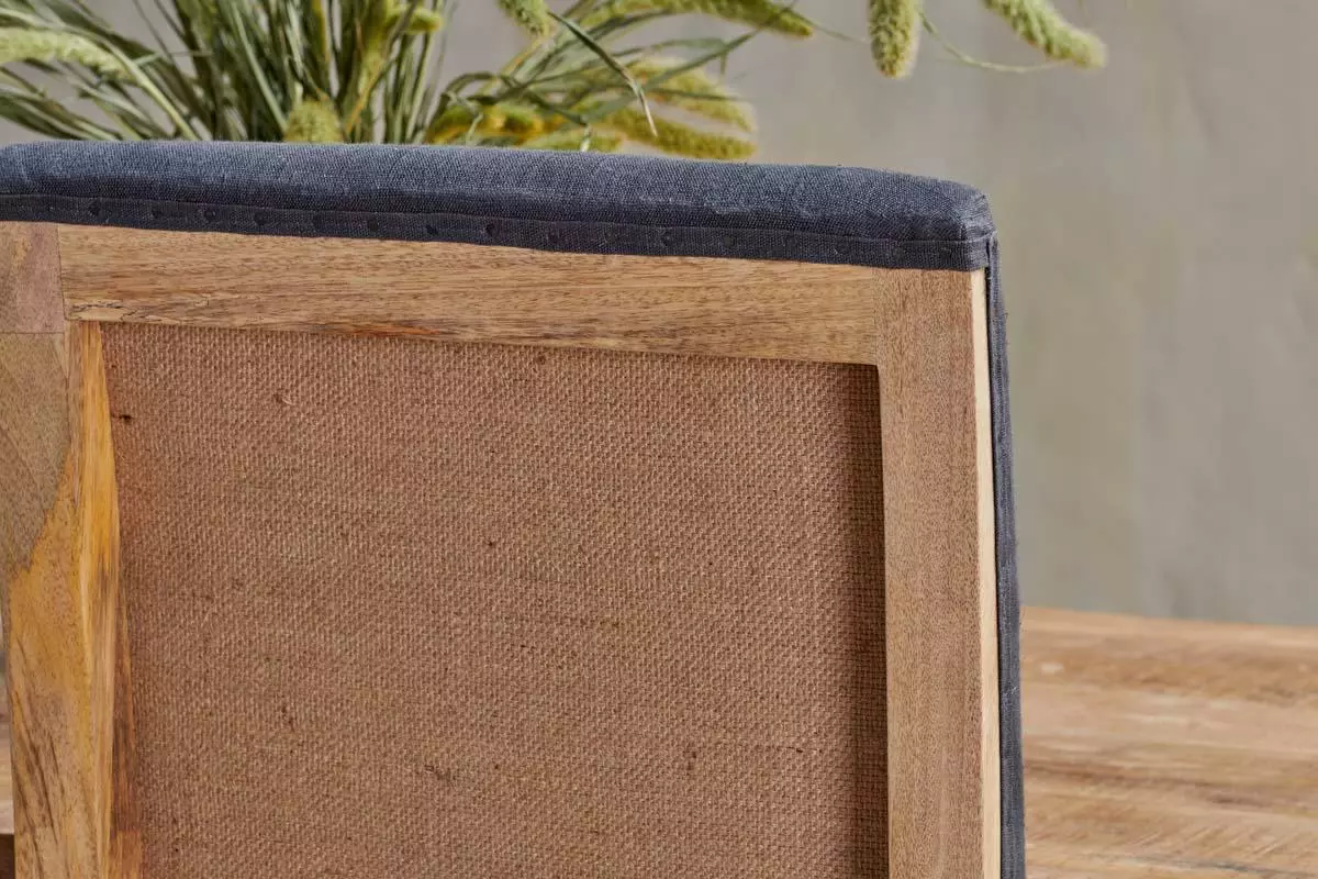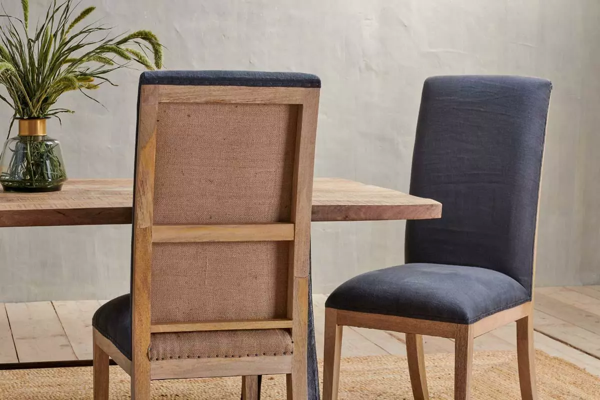 The Chapora Collection combines comfort and elegance in equal measure. Expertly handcrafted, with a tactile upholstered charcoal linen seat and a deconstructed sustainable mango wood back, and eco hemp lining. As well as the perfect dining chair, these pieces also work well in a bedroom or either side of a console table in a hallway.