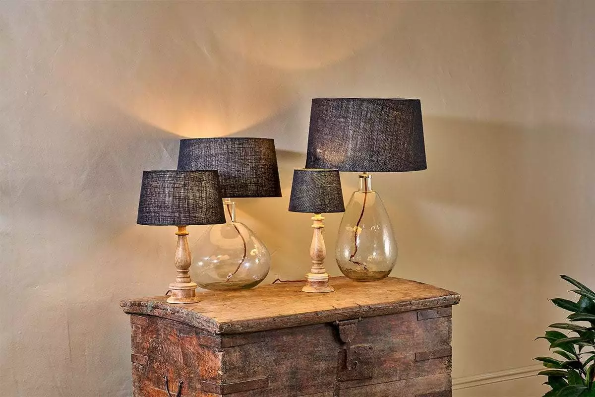 These elegant dark ink jute lampshades can be styled with our selection of table lamps.