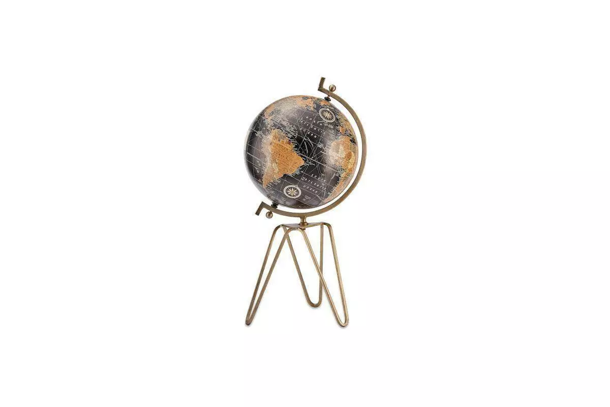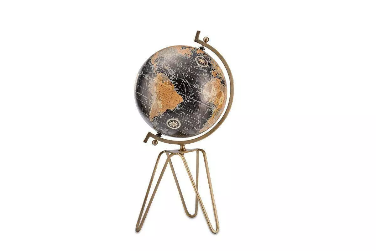 This stylish black and burnt orange decorative globe is supported with a brass tripod base. The map, whilst accurate, has not been created by a cartographer and is for decorative purposes.