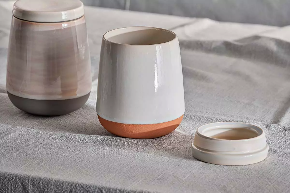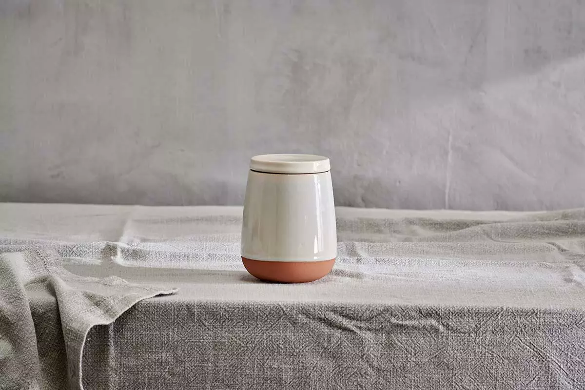 The smooth off – glaze of our Edo storage jar, has a tactile earthy terracotta base. This practical jar has an airtight seal to keep its contents fresh.
