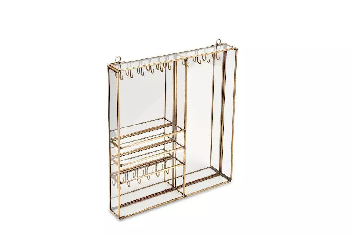 These elegant mirrored wall hung jewellery boxes are made from brass. The striking design is well suited for displaying jewellery items.