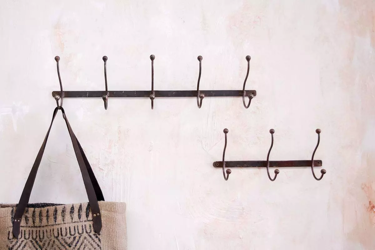 These sturdy iron hooks are a classic design, perfectly curved to keep items in place. With three double hooks.