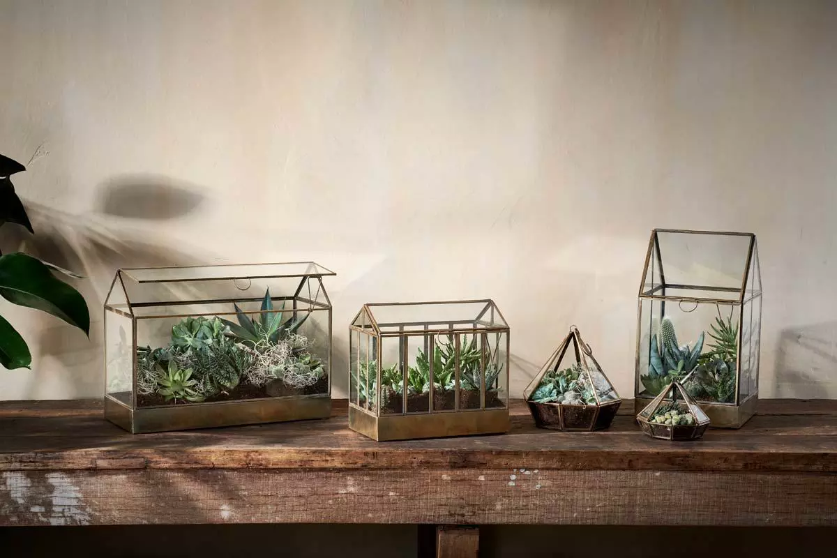Display your house plants beautifully in one of our elegant Telaga Terrariums. These striking pieces are all skilfully crafted by hand. The Telaga has a greenhouse design complete with glass roof that opens with a support latch, as well as plenty of room to get creative with an indoor miniature garden.