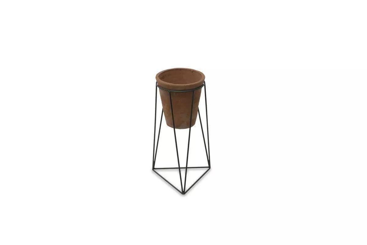 These geometric, zinc plant stands and terracotta plant pots look great styled together in a mix of both heights.