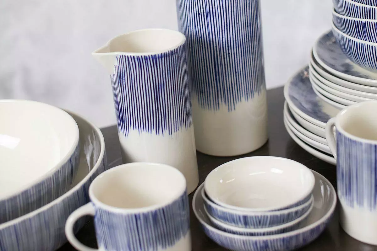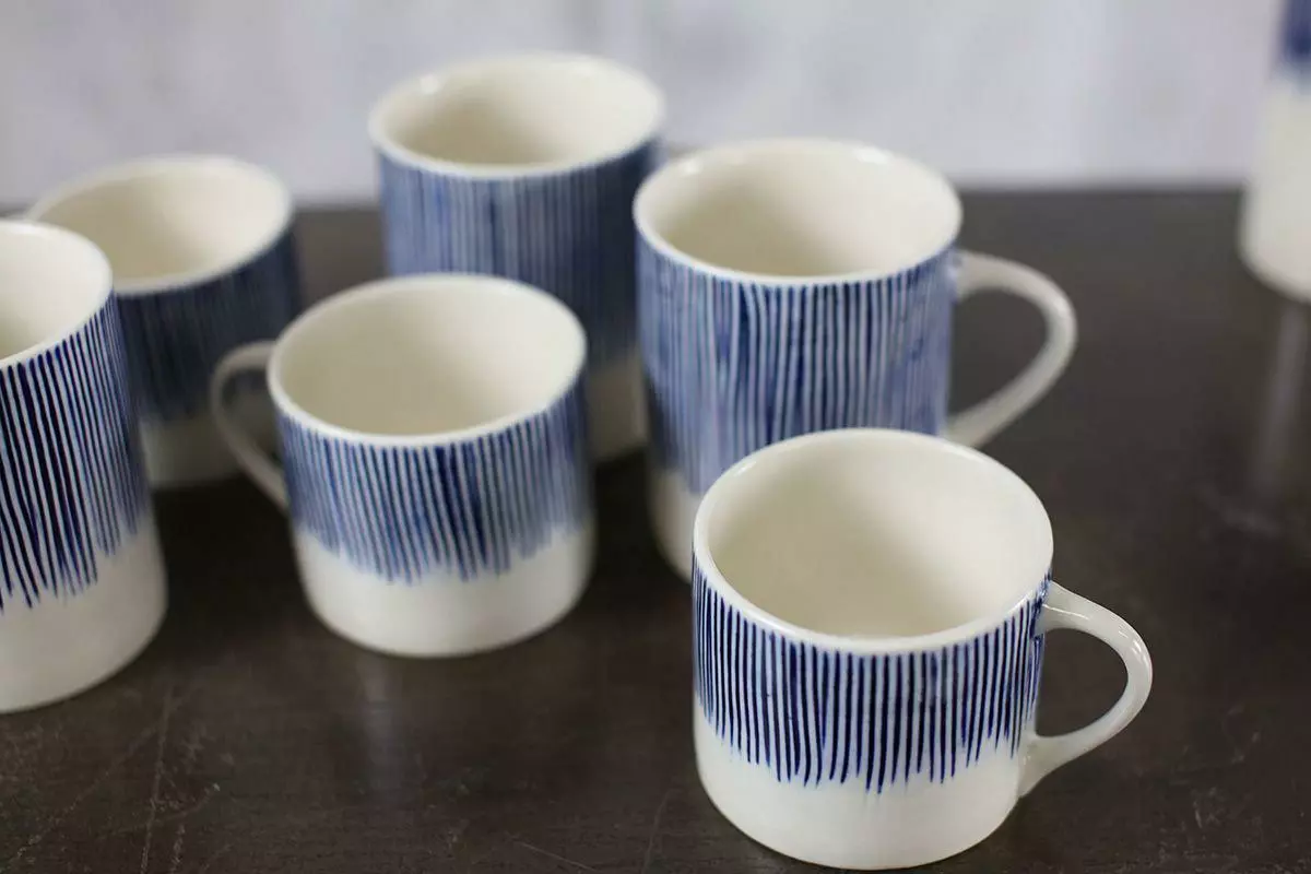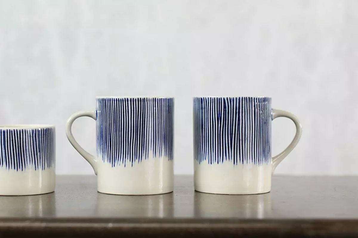 Our Karuma Ceramic short mugs have a distinctive and striking design. The thin blue lines are first etched into the clay then hand painted. This collection is handmade in north Vietnam using age – old methods.