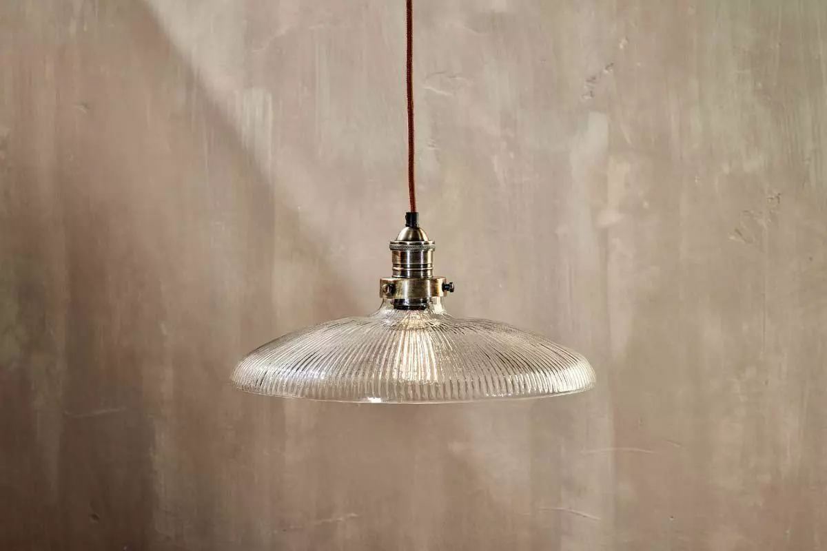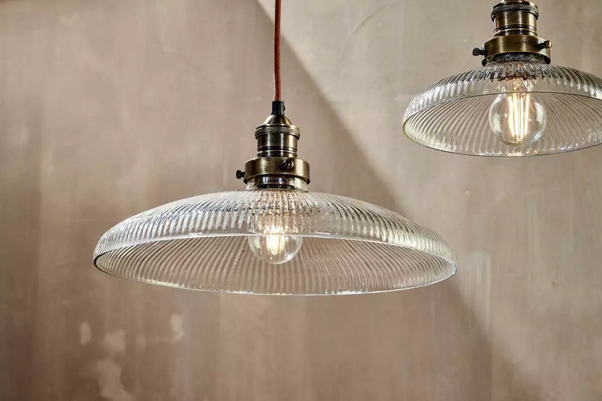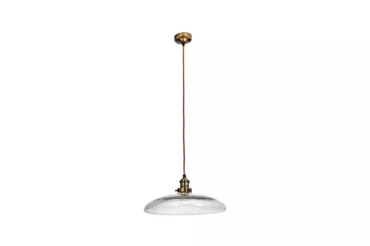 The timeless design of our Zowie Pendant Light combines a ribbed glass shade with handcrafted brass fittings. The shallow shade styles well over a table or kitchen island. The ribbed detailing of the glass shade, not only adds an attractive design detail but helps diffuse the light.