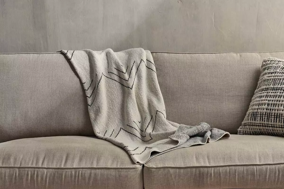 Soft and cosy, is the best way to describe our Kosumi Throws. Generously proportioned these off-white cotton throws have a tactile weave, decorated with a simple peak monochrome design. Perfect to immerse yourself in on a cool evening or brighten up a sofa.