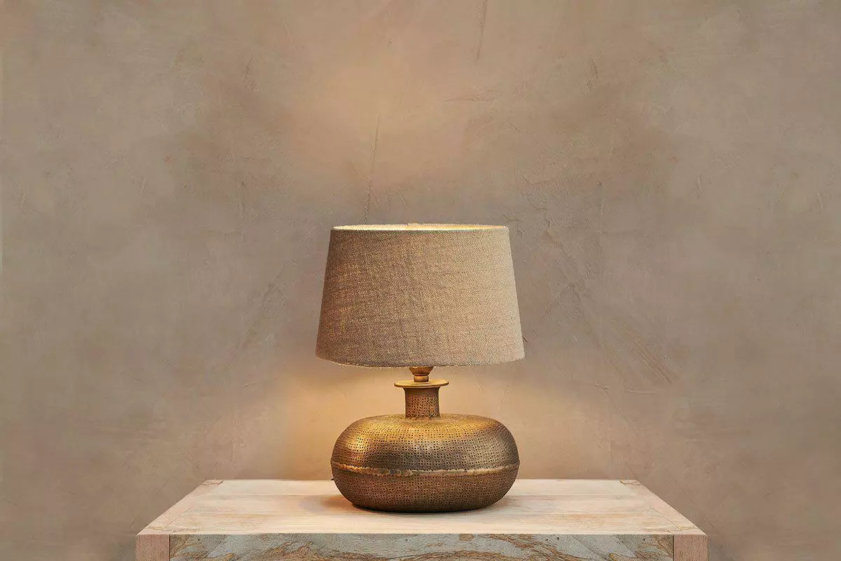 The Lumbu lamp has an interesting antique appearance derived from the honest, artisan techniques used to create it. The antique – brass finish enhances the tactile pattern in an understated and stylish manner. Each lamp comes with a brown fabric cord. Complete the look with one our attractive lampshades.