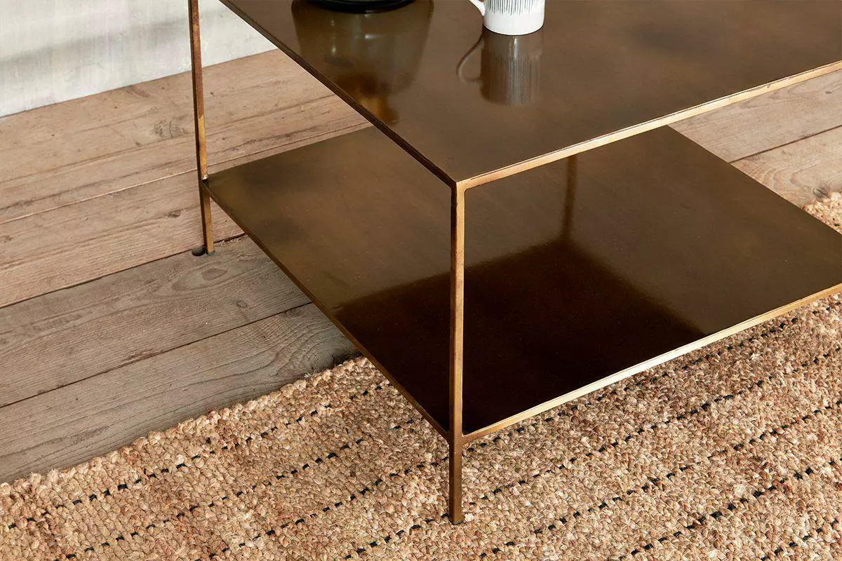 Strikingly simple in design, our Mahi Coffee Table has an attractive brass finish. The practical lower shelf is ideal for your favourite coffee table books and magazines.