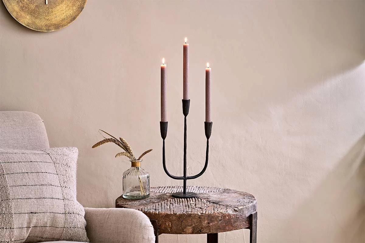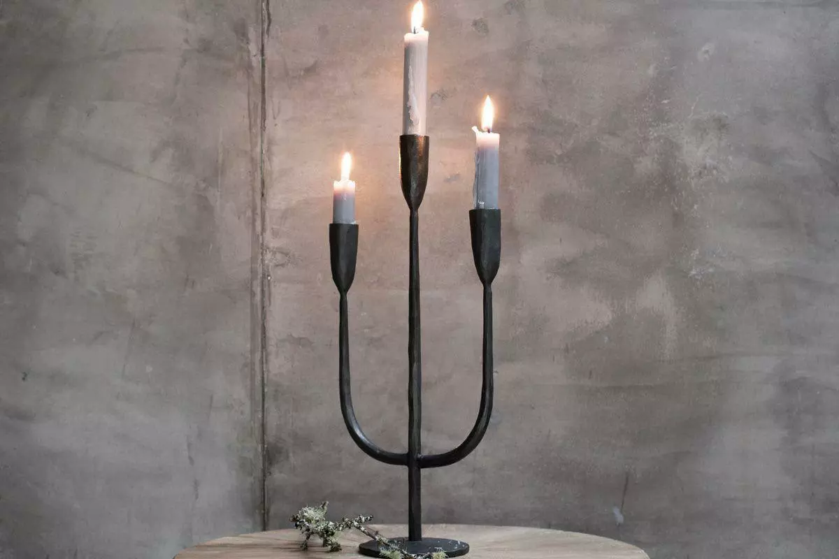 These elegant candlelabras are handmade from black iron.