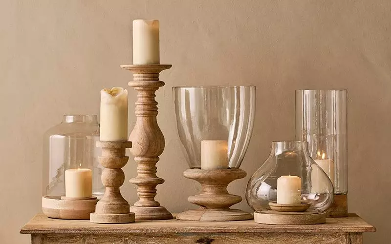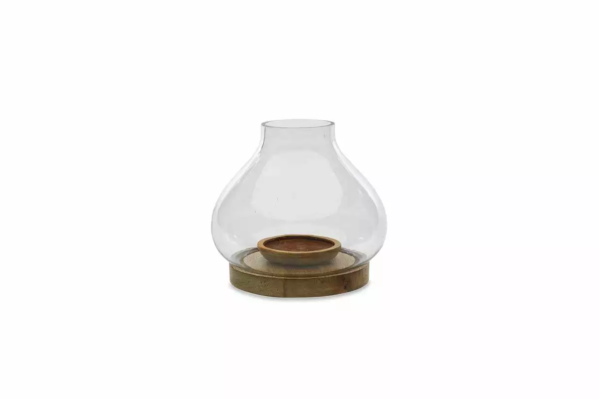 The bulb shape of these glass storm lanterns sits perfectly on the solid mango wood base. Perfect for atmospheric evenings inside and out.