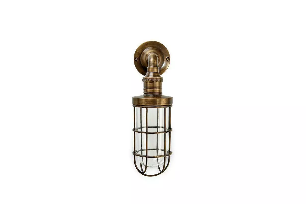 This brass outdoor light has a striking caged design, perfect for adding definition and light to an outside space.