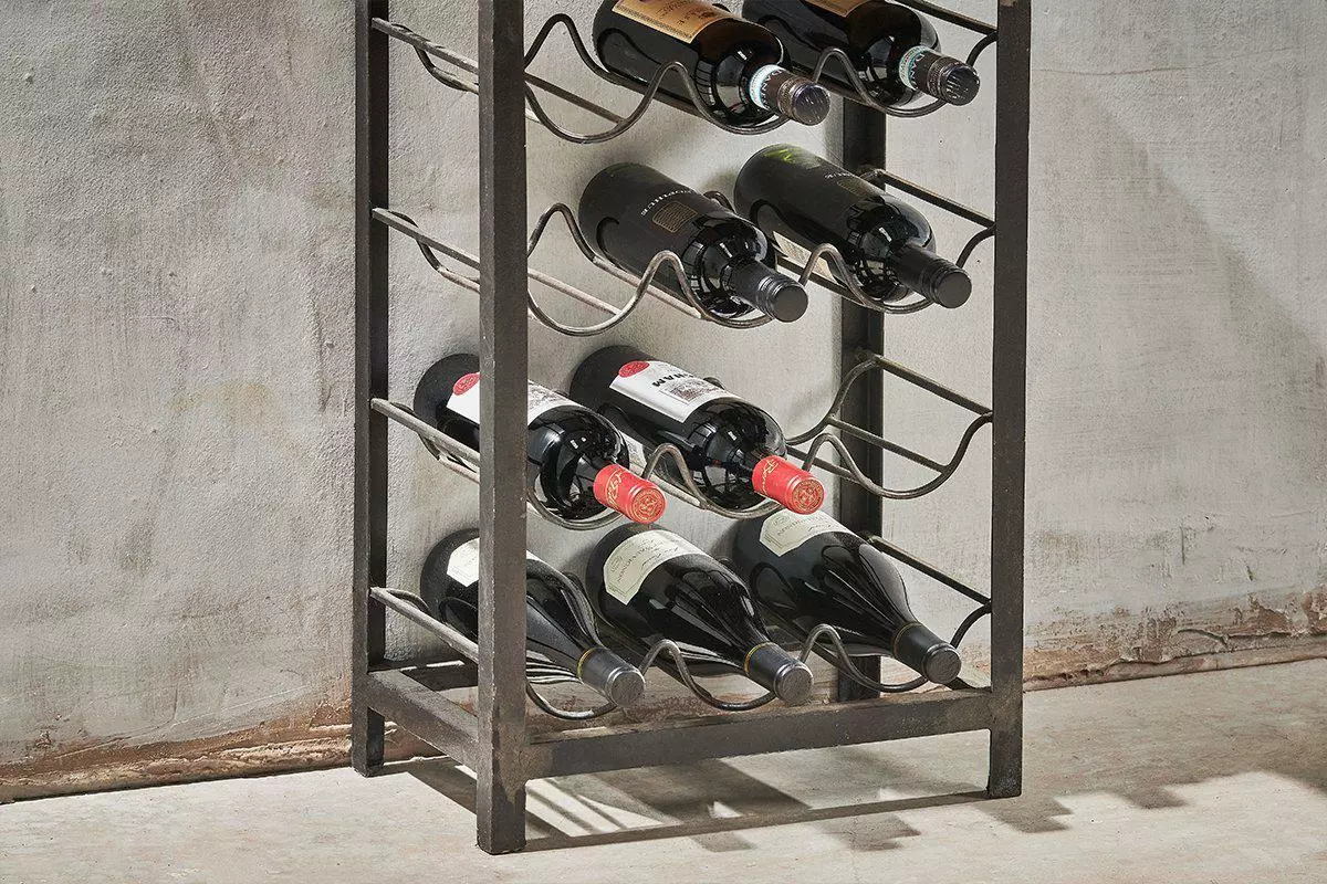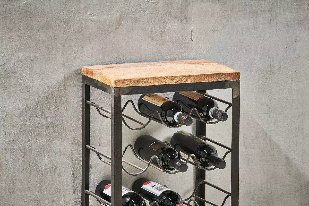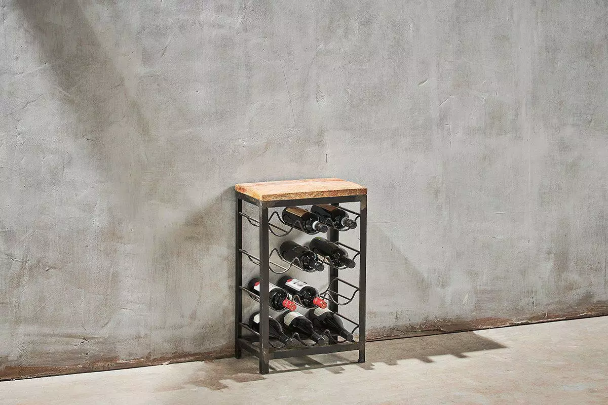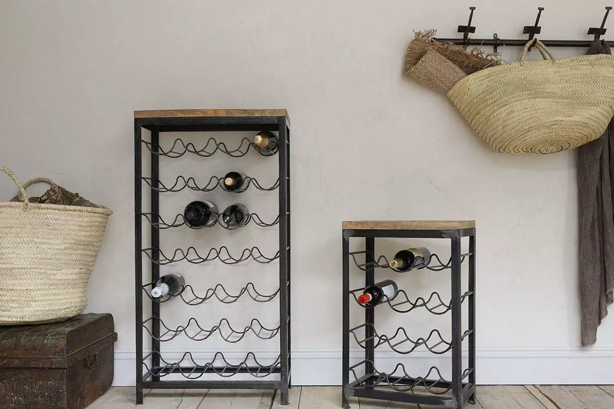 These practical iron wine racks have a mango wood top and iron base. Choose from two sizes, 12 bottles and 28 bottles.