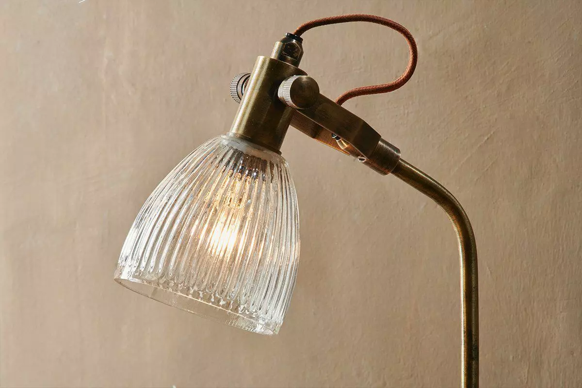The ribbed glass shade of our Rarni Table Lamp adds a lightness to this elegant, well designed, aged-brass desk lamp. The perfect accompaniment to our Mansu and Nermadu desks.
