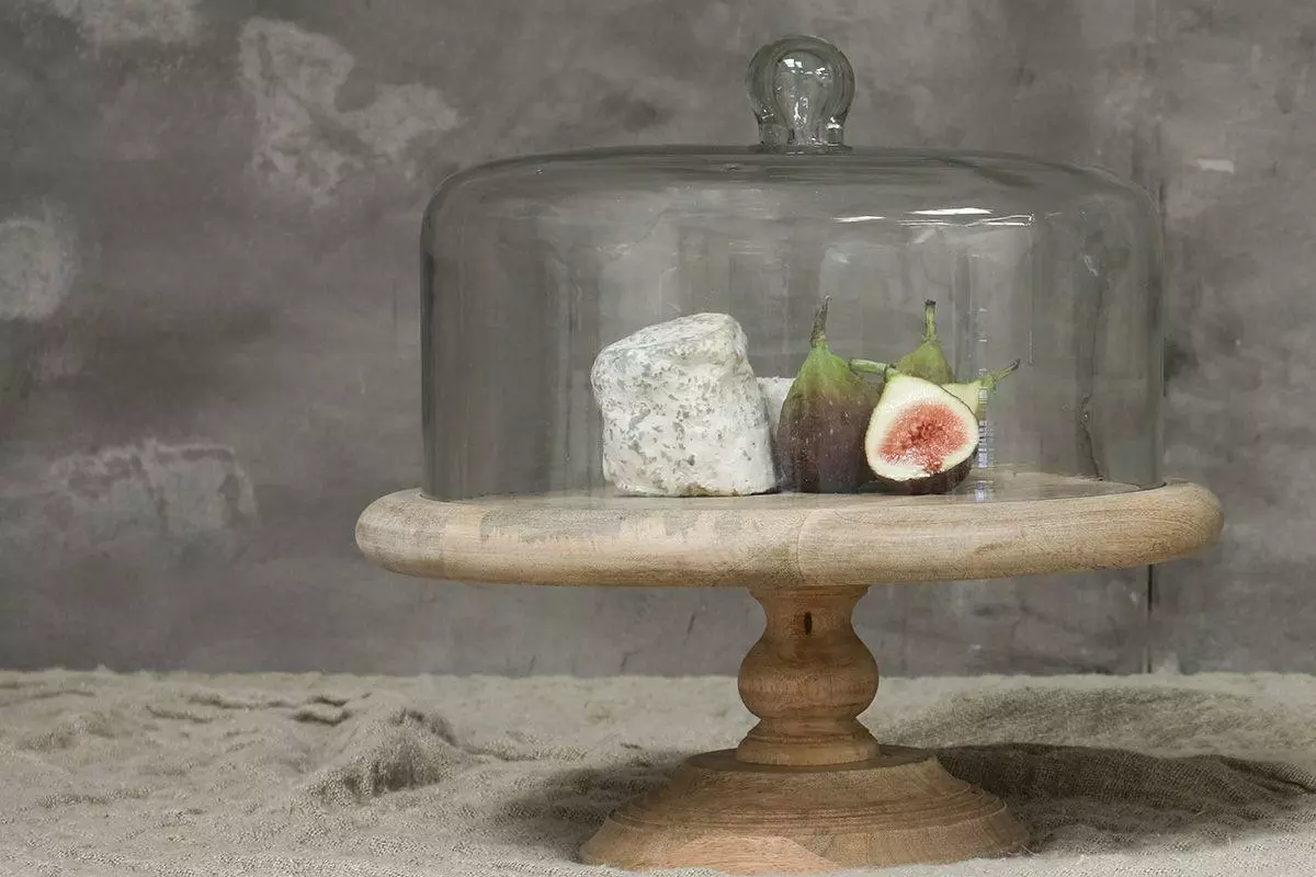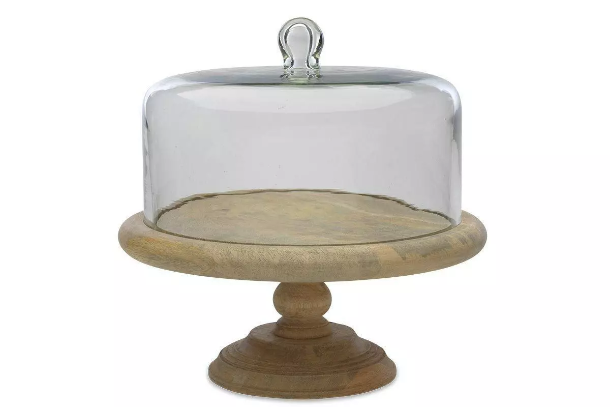 This traditional raised cake stand has a modern twist. The stylish mango wood base supports the handmade glass dome. These are perfect for serving and displaying cakes or cheeses.