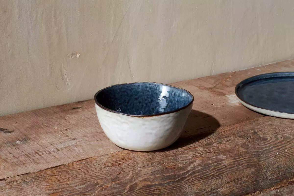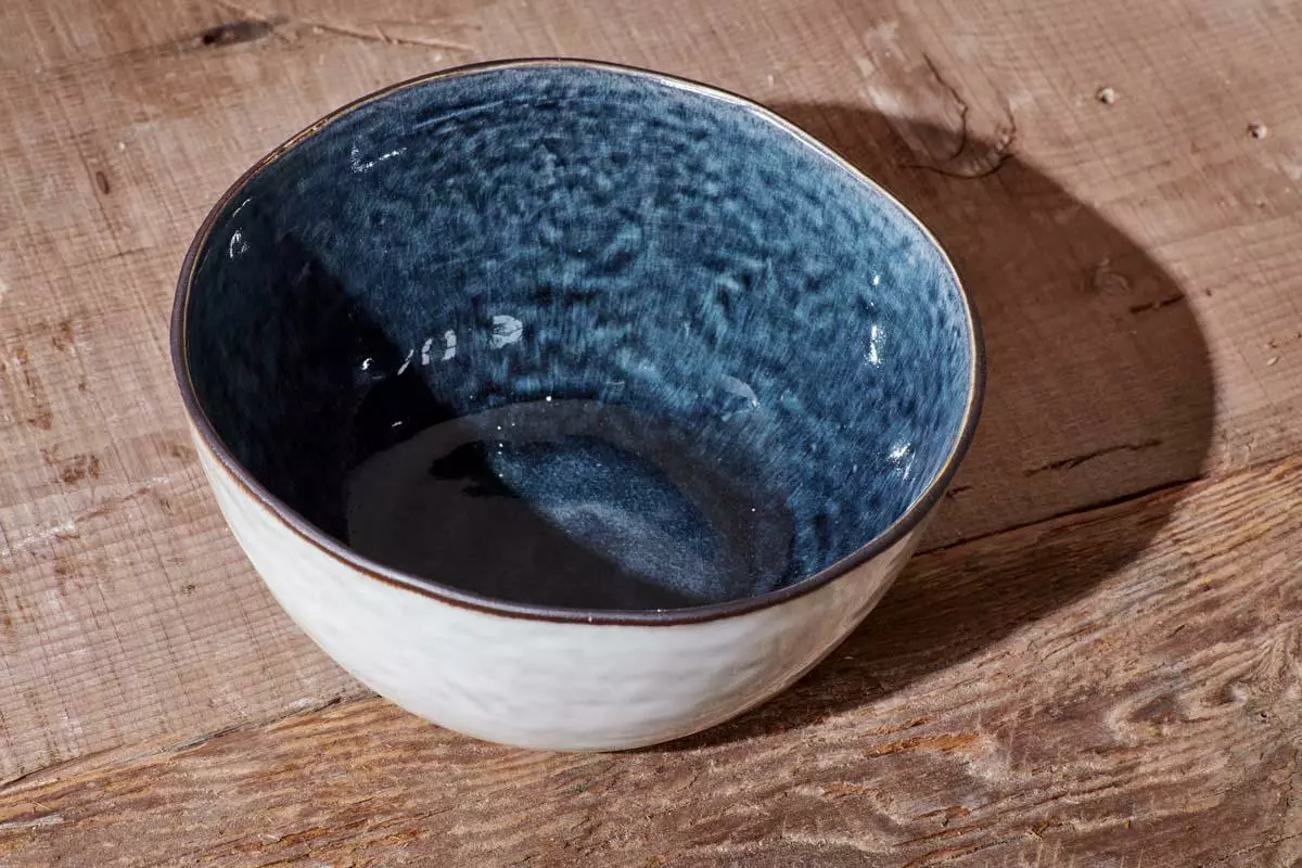 The deep blue glaze of our Simi Bowl, has an appealing tone. The reactive glaze has a mesmerising finish that contrasts with the subtle off-white tone of the exterior, which beautifully enhances the colours within.