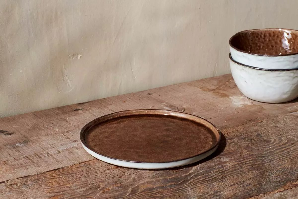 The warm earth patina of our Simi Side Plate has a beautiful, tonal glaze. The contrasting exterior has a subtle off-white finish, that enhances the colours within.