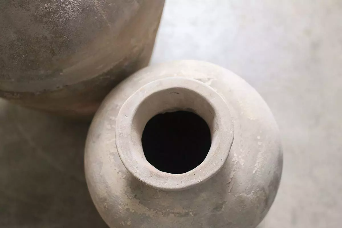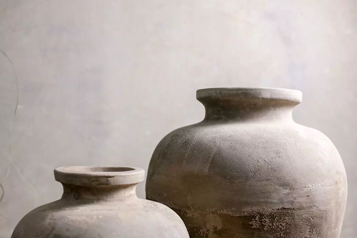 These traditional urn shaped clay pots make an elegant addition to a garden or inside space.