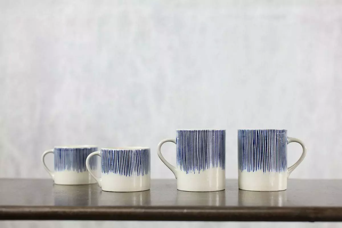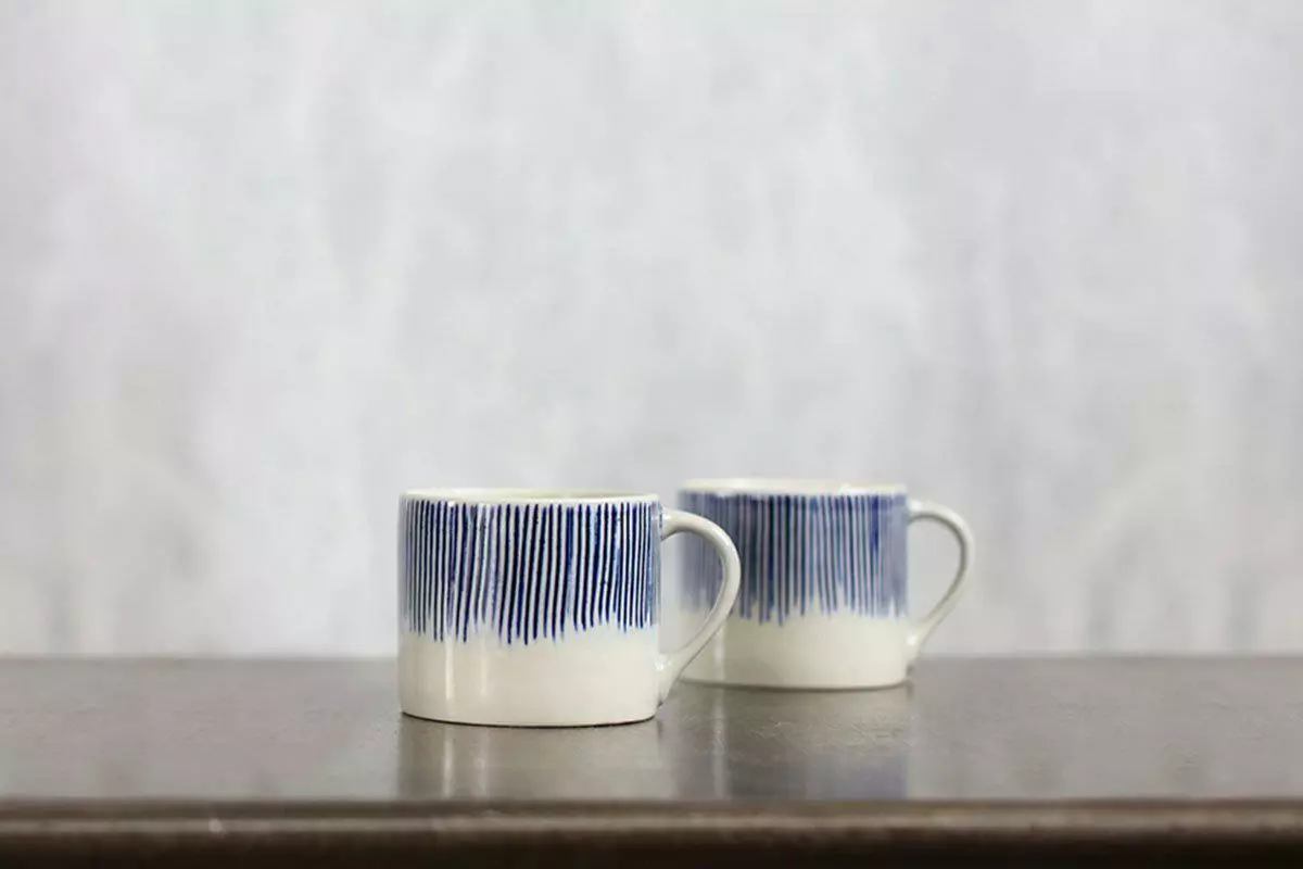 Our Karuma Ceramic short mugs have a distinctive and striking design. The thin blue lines are first etched into the clay then hand painted. This collection is handmade in north Vietnam using age – old methods.