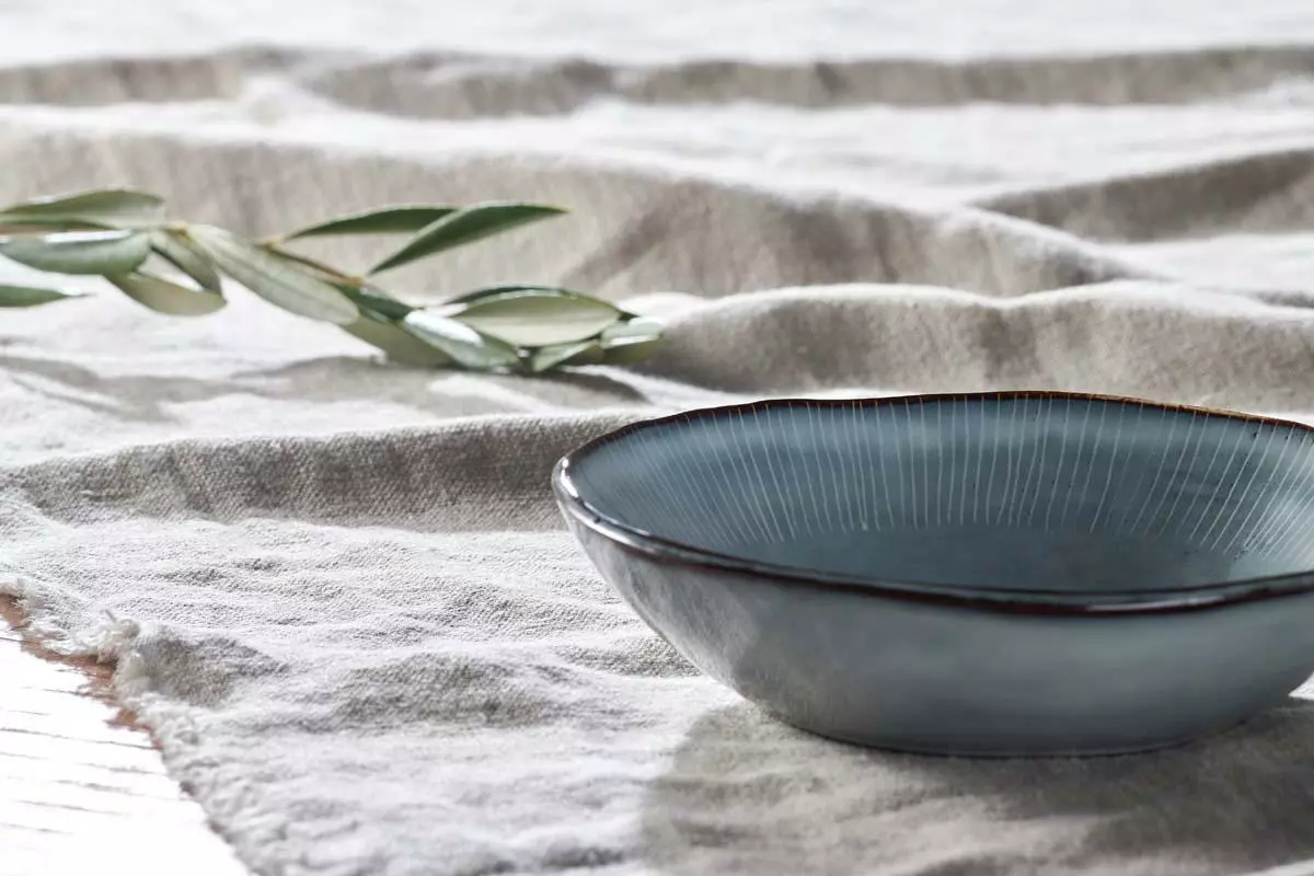 A tactile etched design, decorates the top inside edge of our Malia bowl. This displays beautifully on the dusty blue glaze and its appealing earthy undertone.