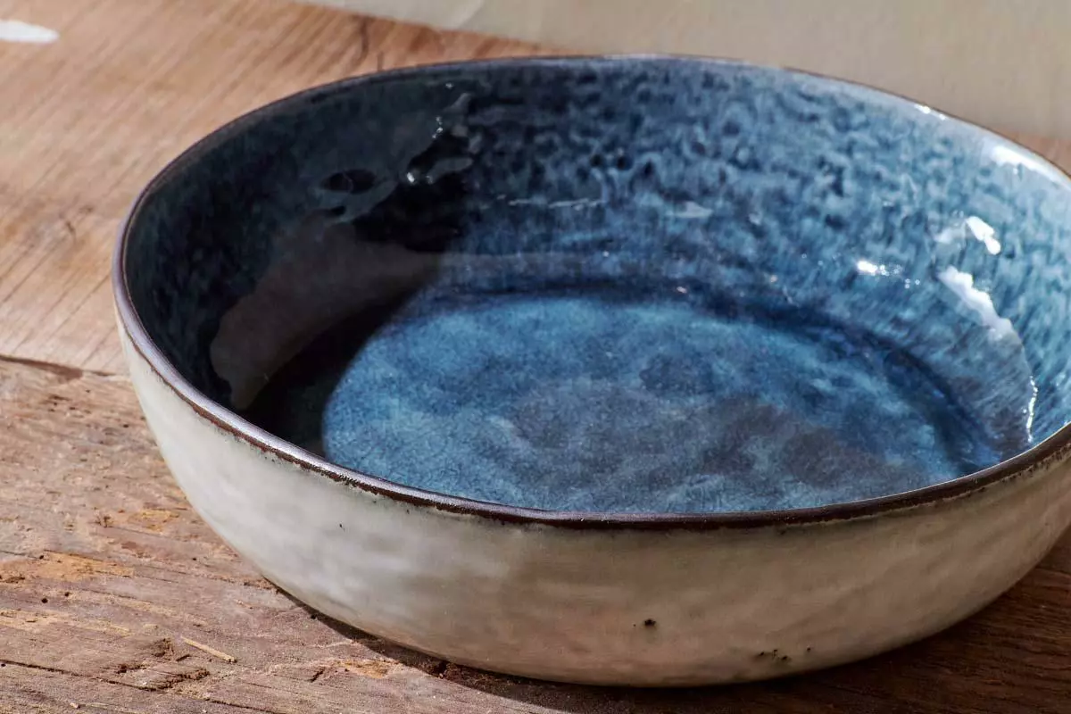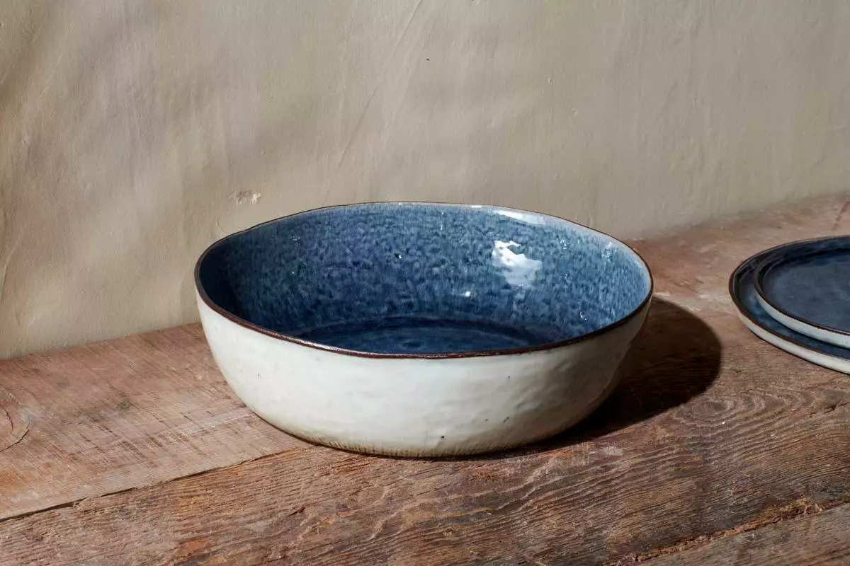 Our large Simi Serving Bowl, is generous in size. The mesmerising deep blue glaze contrasts with striking effect against the off-white exterior.