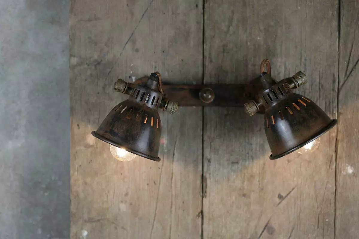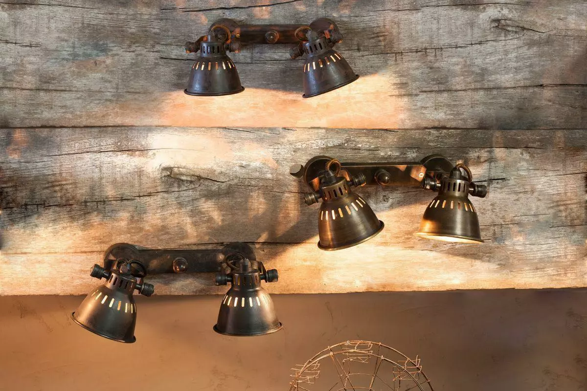 Decorate your home with this industrial looking double spotlight. This lovely piece works extremely well as a wall light. The two spotlights come with a flexible head which allows you to angle the lamp.