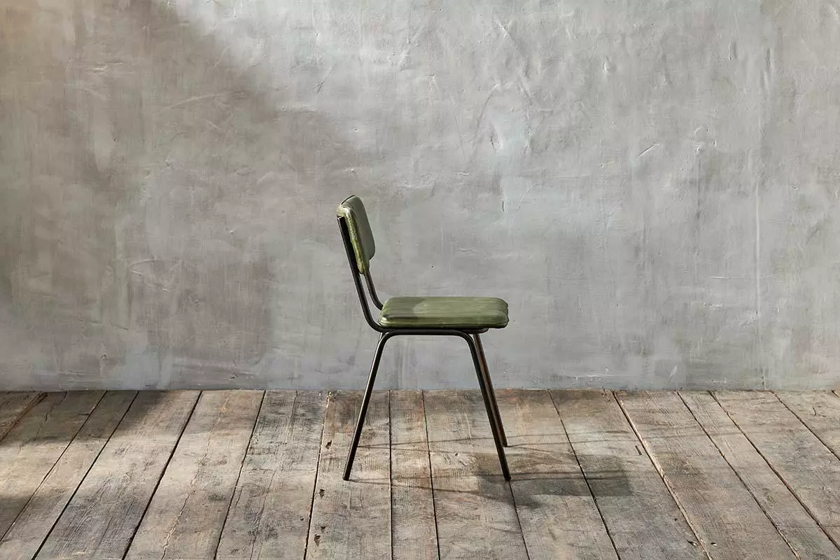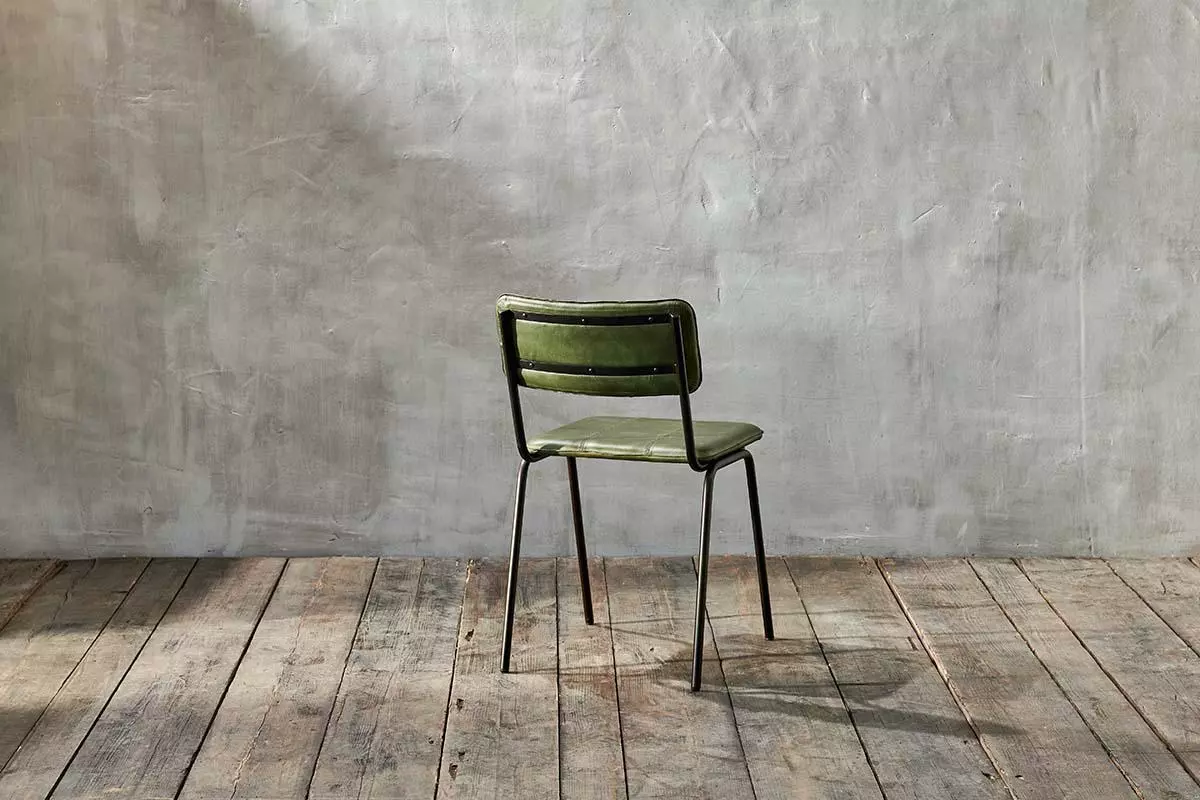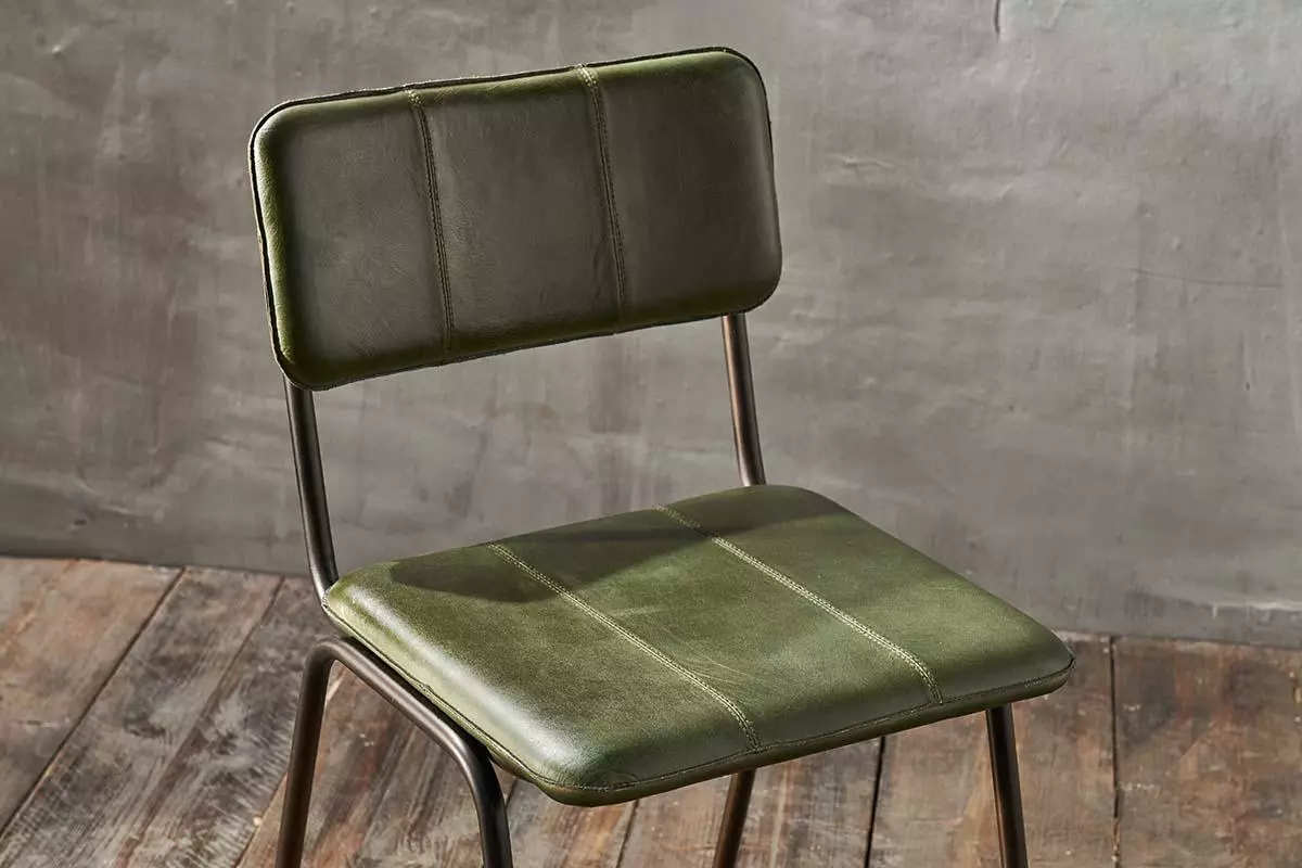 The soft, library green of our leather Ukari dining chair adds a sophisticated tone to this stylish dining chair. The green shade is perfect for uplifting a kitchen or dining area.