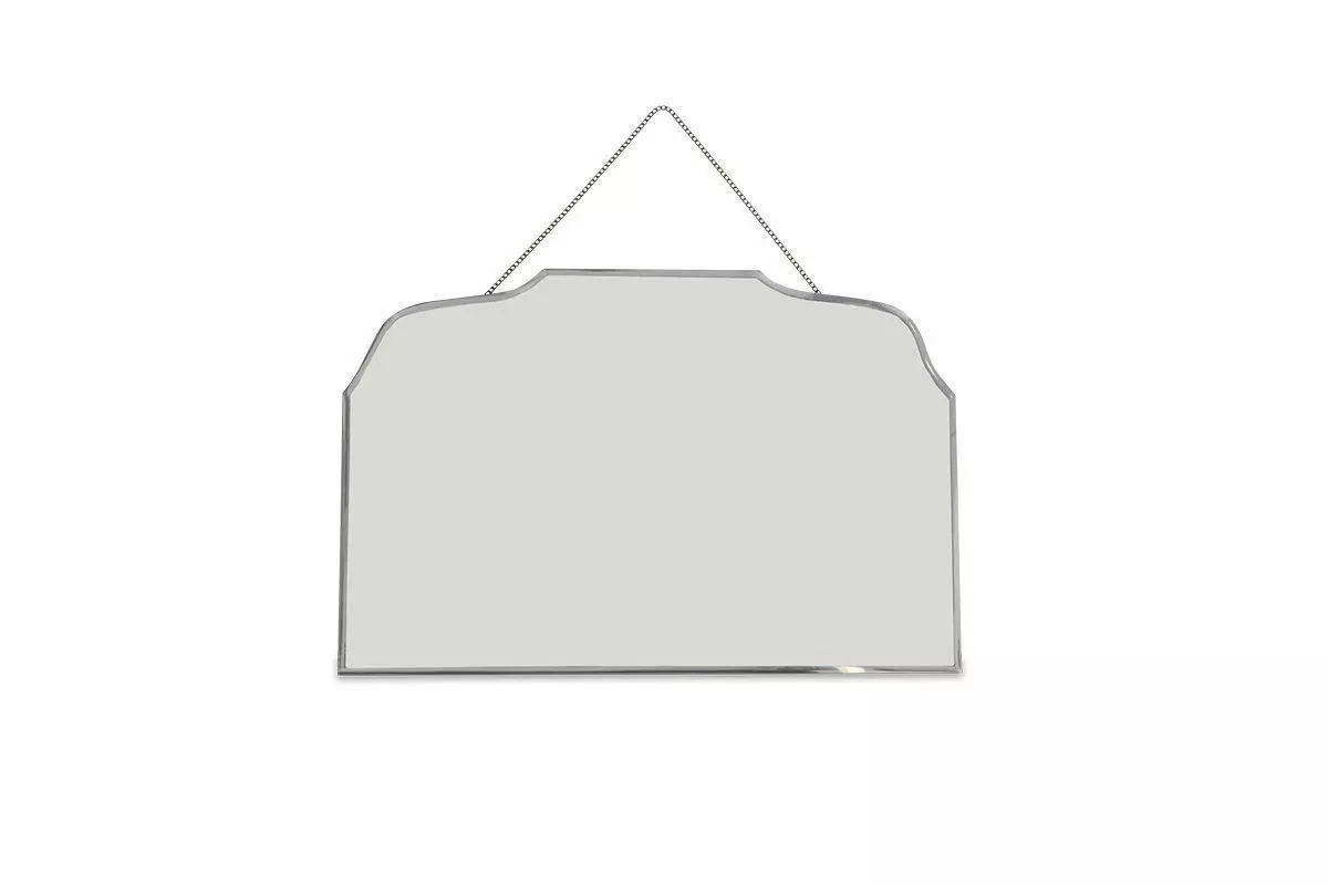 This rectangular shaped mirror is classic vintage. The landscape aperture is practical and stylish. We love the curved detailing on the top corners of the mirror.